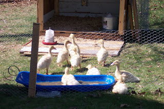 We were totally unprepared for the ducklings. They spent their first week in a couple of cardboard boxes in the living room, going through at least 6 rounds of water a day, spilling and pooping everywhere, creating a godawful stink. Ducklings are way, way messier than chicks. The stink was getting to me by the time we finally cobbled together a duck house. I started the project and Mike finished it on one of the days when I was off at work, and Nova was parked in front of the TV.